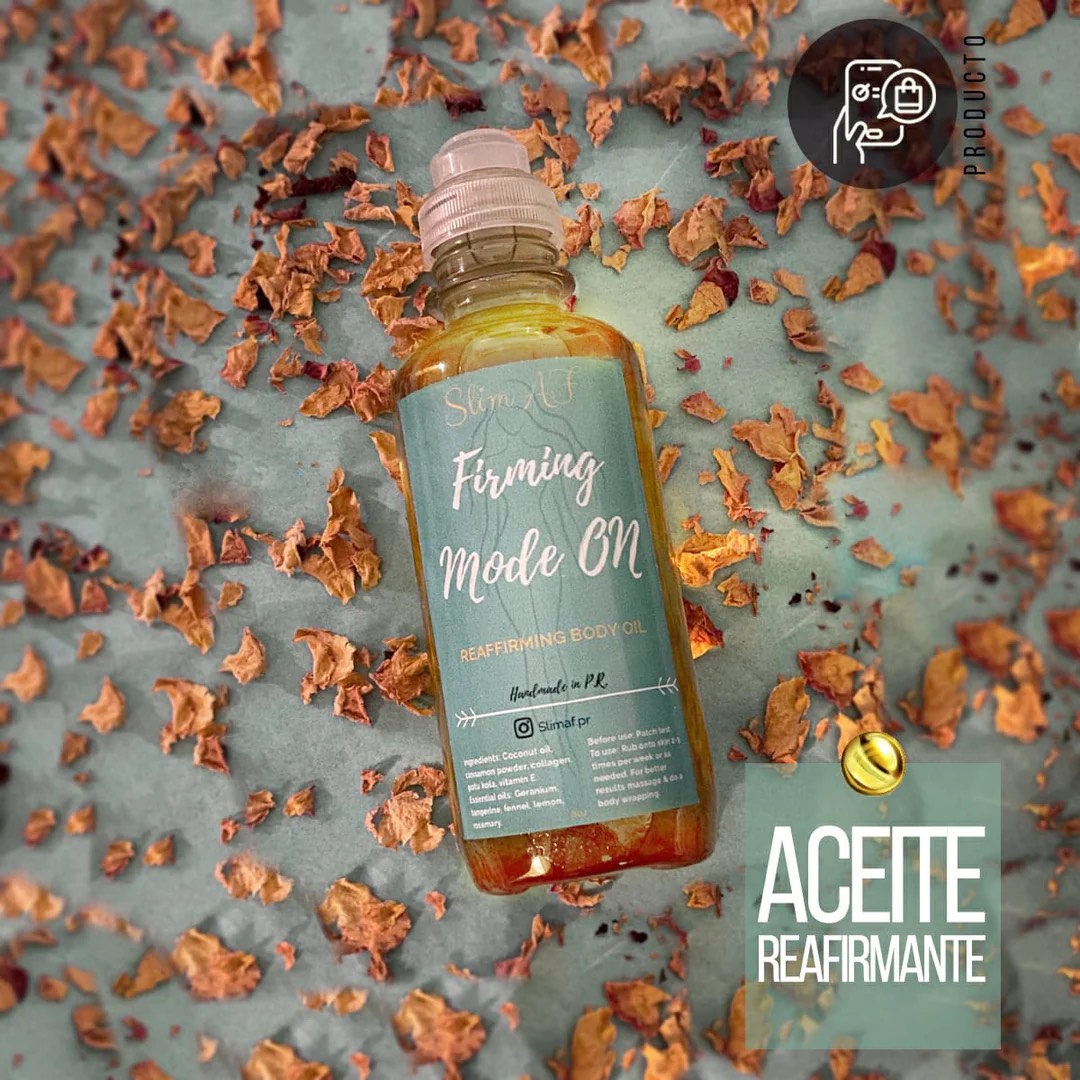 El Aceite Corporal Reafirmante está elaborado sin parabenos y con ingredientes naturales.  Su función es Reafirmar, tonificar y mejorar la elasticidad de la piel.  Es ideal para todo tipo de piel, se puede utilizar en todo el cuerpo; abdomen, brazos, muslos, caderas y glúteos.
